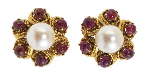 3279. Clips d'oreilles centrés chacun d'une perle (D env. 8 mm) entour...