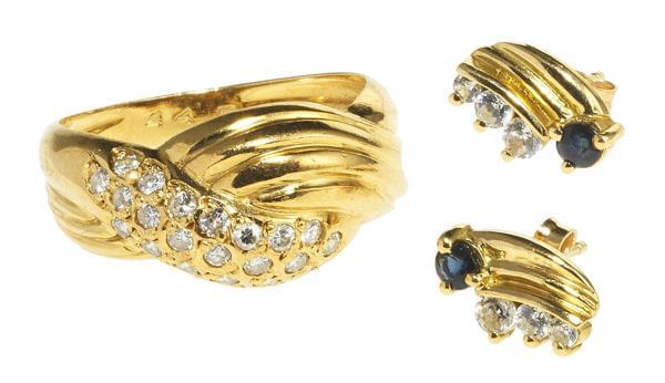 3251. *Ensemble d'une bague et de boucles d'oreilles serties chacune d...