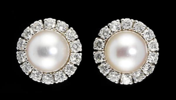 3291. Clips d'oreilles sertis de perles (D env. 8,3 mm) entourées de d...