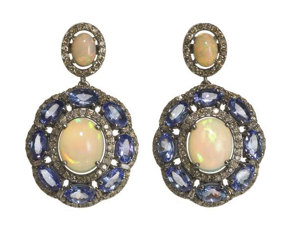 3225. *Pendants d'oreilles centrés d'une opale taille cabochon ovale (...