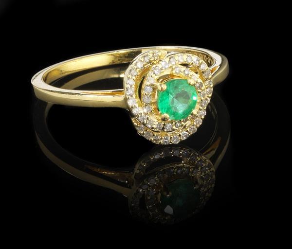 3299. *Bague centrée d'une émeraude taille brillant (env. 0,3 ct) sert...