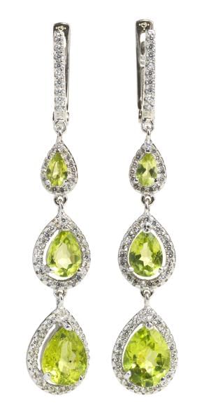 3405. *Pendants d'oreilles retenant trois péridots taille poire en chu...