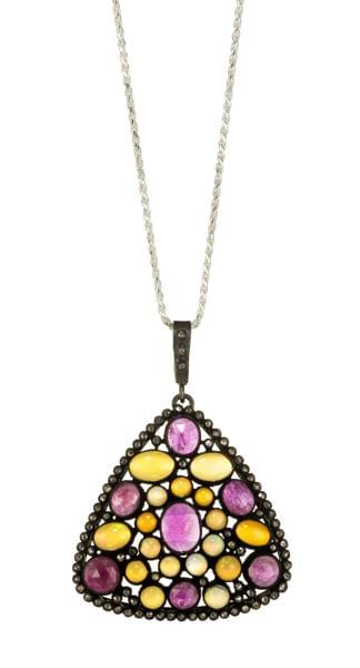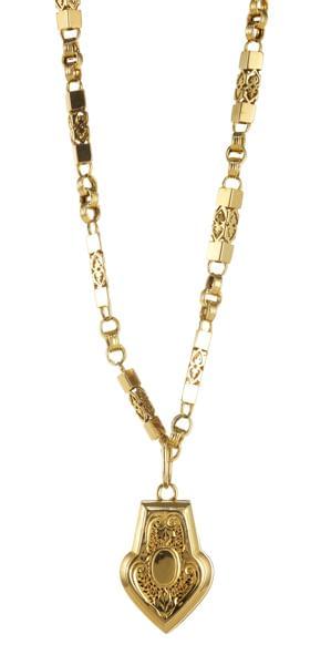 3409. *Chaîne à maille torsadée retenant un pendentif triangulaire ajo...