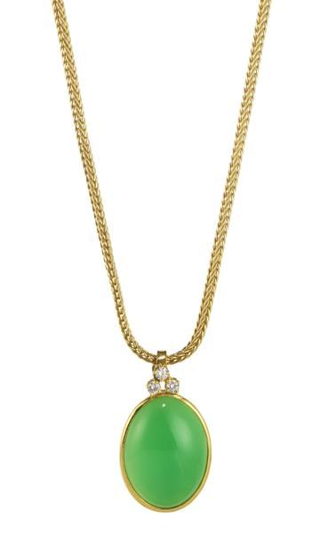 3416. Chaîne à maille colonne retenant un pendentif serti d'une chryso...