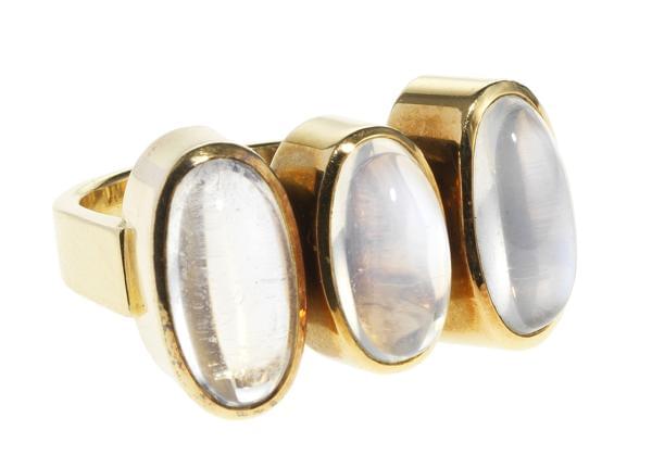 3417. Bague sertie de trois pierres de Lune taille cabochon ovale