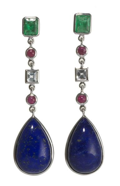 Serties de rubis, saphirs et émeraudes et rehaussées de diamants...