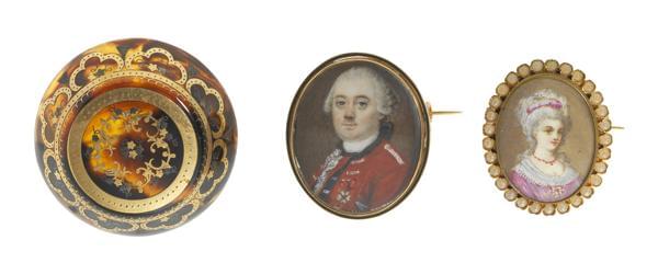 L'une ronde en écaille décorée de motifs floraux en or, les deux...