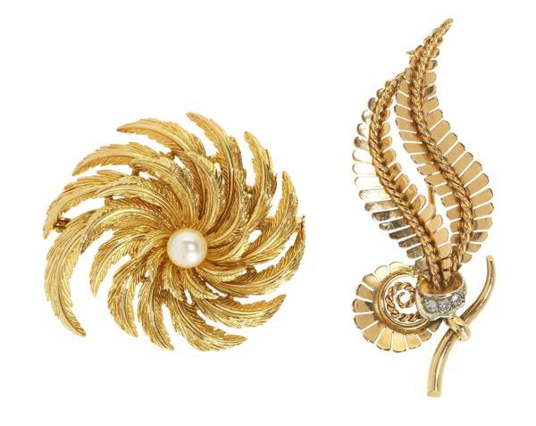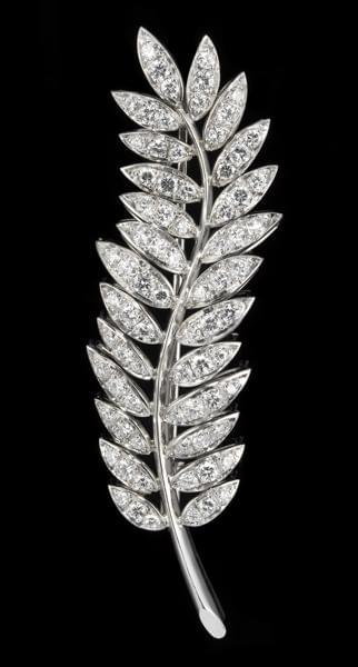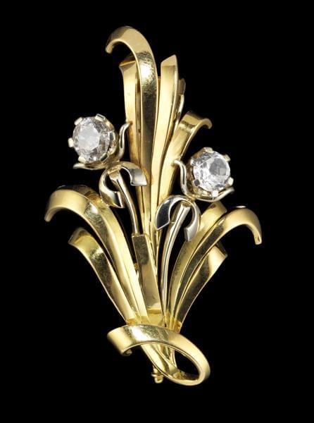 3435. Broche bouquet stylisé sertie d'un diamant taille ancienne (env....