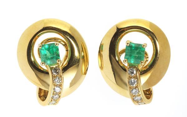 3440. Clips d'oreilles sertis chacun d'une émeraude taille émeraude re...