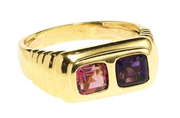 L'une sertie d'une améthyste octogonale (env. ), l'autre sertie...