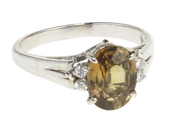 3454. *Bague sertie d'un saphir color change vert-brun taille ovale (2...