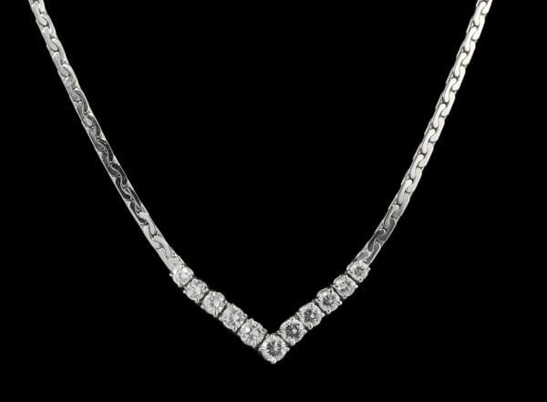 3472. Collier tour de cou à maille plate centré d'un motif en chevron...