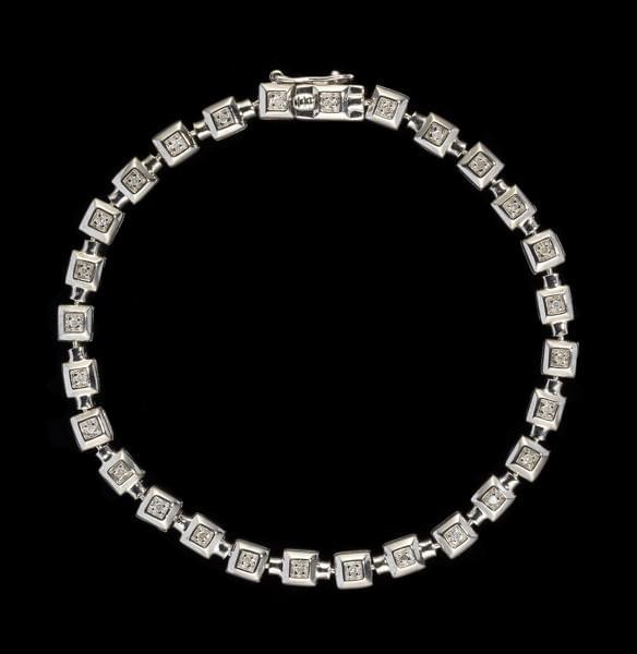 3500. *Bracelet ligne composé de motifs carrés sertis de diamants (tot...