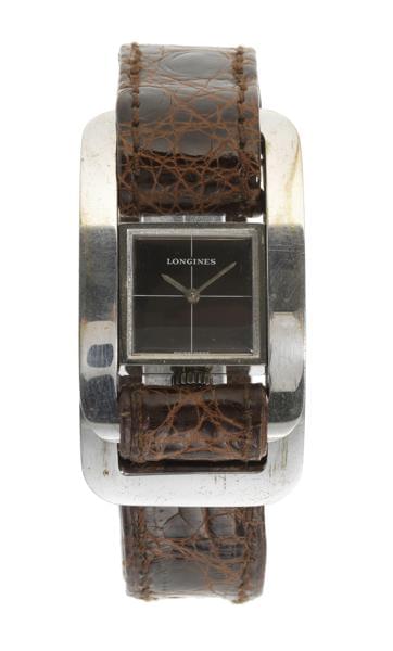 3619. Longines par Serge Manzon, Boucle de ceinture, montre rectangula...