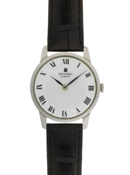Cadran blanc, aiguilles et chiffres romains argentés, date à gui...