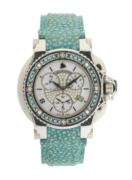 Cadran nacré pavé de diamants, lunette sertie de diamants et top...