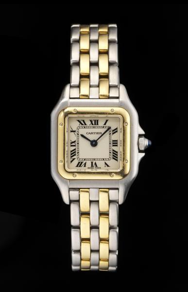 La première à quarz, cadran doré et chiffres romains dorés, plaq...