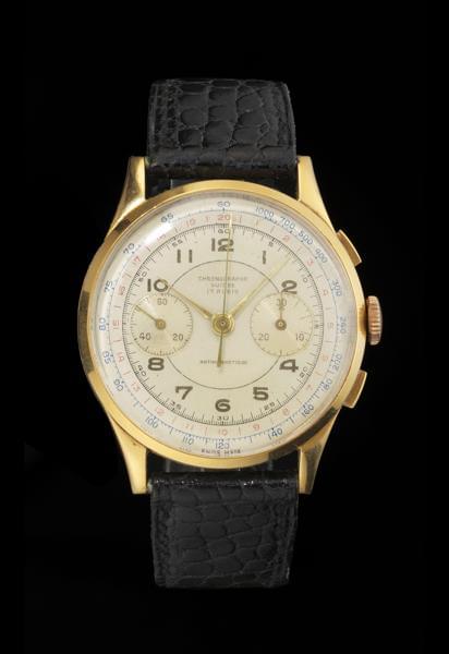 3628. Chronographe Suisse, montre chronographe ronde mécanique