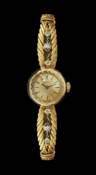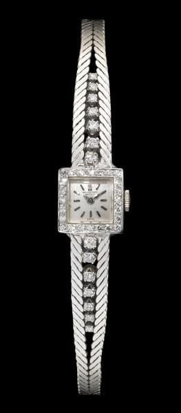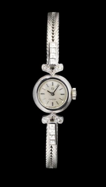 3654. Omega, montre-bracelet ronde mécanique sertie de diamants