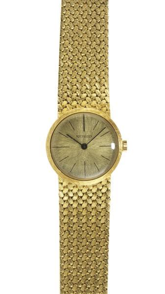 Cadran et index bâtons dorés, aiguilles blanches, bracelet en or...