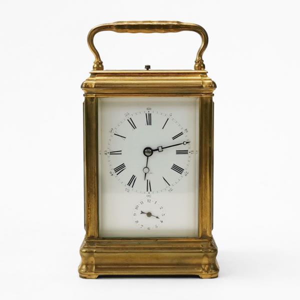 Cadan blanc, aiguilles et chiffres romains noirs, métal doré, D...