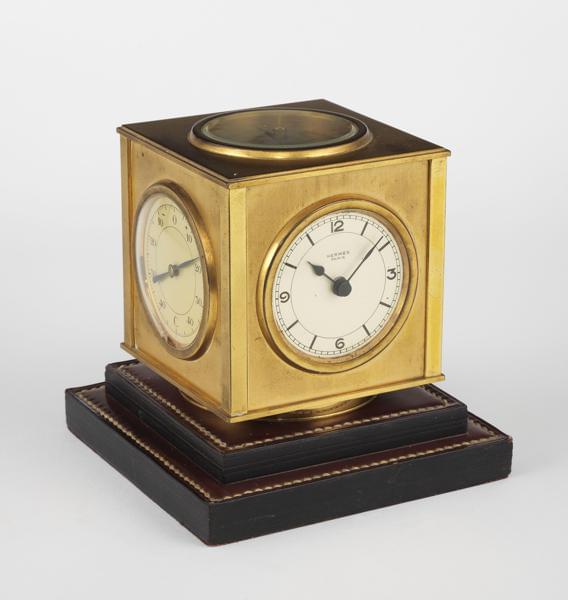 Composée de quatre cadrans faisant montre, baromètre, thermomètr...