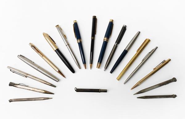 Ensemble de dix-huit stylos, métal doré et argenté, laque