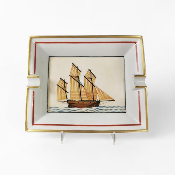 Le premier à décor d'étriers dorés sur fond ivoire et bordure ch...