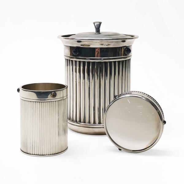 3690. Cartier, seau à glaçons, pot à crayons et loupe cannelée à caboc...