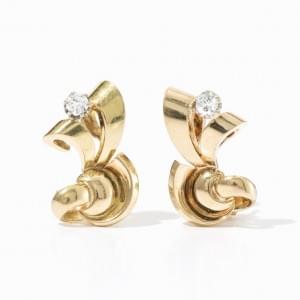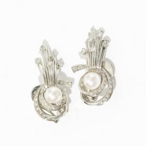 3228. Paire de clips d'oreilles stylisés sertis de perles et diamants
