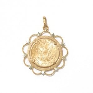 3222. Pendentif sertis d'une pièce de monnaie américaine de 5 dollars...