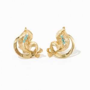 3223. Paire de clips d'oreilles stylisés sertis de verre turquoise