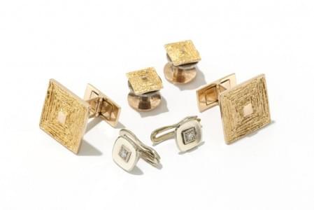 3225. Paire de boutons de manchette et deux boutons de plastrons assor...