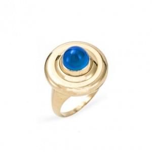 3231. Bague ronde sertie d'un cabochon de calcédoine bleu