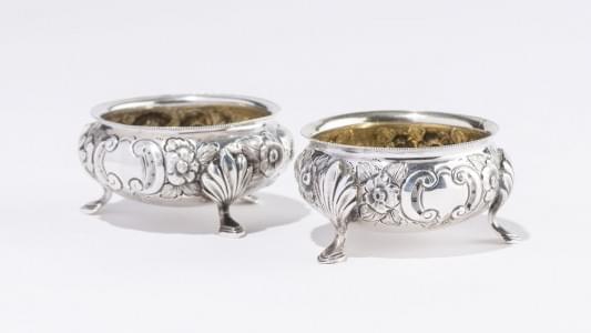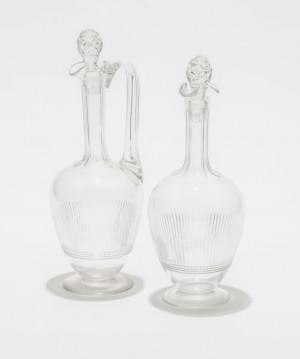 Saleron double, verre moulé pressé et patiné à décor de fleurs,...