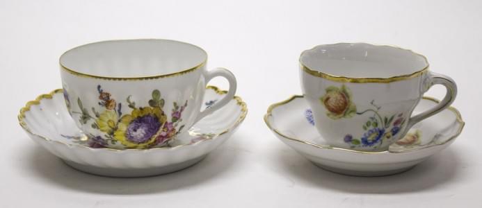 Meissen, porcelaine à décor de fleurs et godrons dorés