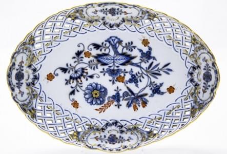 3267. Plat ovale ajouré en croisillons à décor Imari