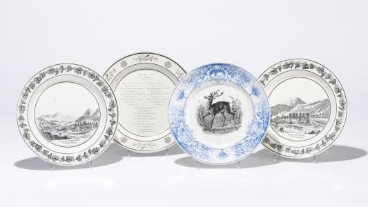 Faïence à décor de paysages, d'un cerf et du poème "Pour toi" pa...