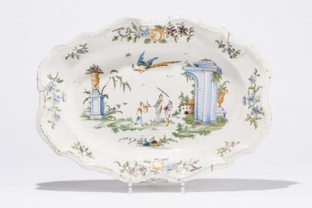 Faïence à décor au chinois, Moustier, XVIIIe s, 5x45x32 cm