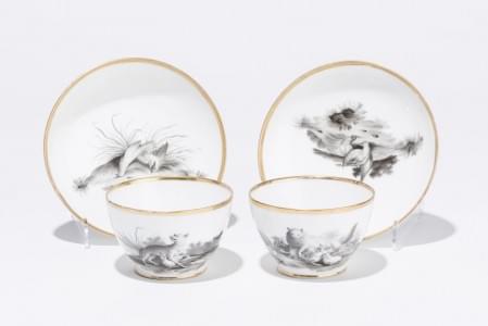 Porcelaine à décor d'animaux en grisaille, Paris, XIXe s, D 8,5...