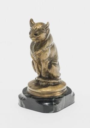 Chat, probablement mascotte automobile, bronze à patine médaille...