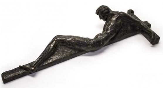 Christ en croix, bronze à patine verte, signé et daté 71, H 57 c...