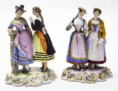Vienne, paire de groupes en porcelaine polychrome, début XXe, H...