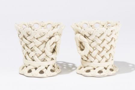 Terre cuite émaillée imitant l'osier, France, Langeais, XIXe s,...