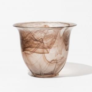 Vase à bords évasés, verre à marbrures brunes sur fond laiteux,...