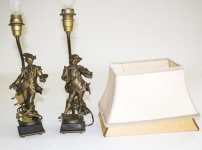 Paires de statuettes en bronze doré, contre socle en onyx, XIXe...