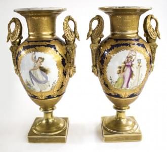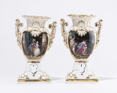 Porcelaine à décor de scènes troubadours et de fleurs, H 27 cm