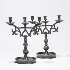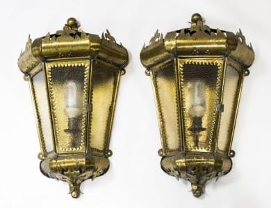 3741. Ensemble de six appliques de style moyenâgeux à deux lumières