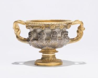 Vase Warwick, bronze argenté et doré, H 12,5 cm, D 14 cm