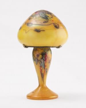 Vasque lumineuse, verre moulé-pressé jaune à décor de fleurs, ci...